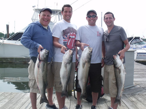 Neil Greenbaum and his three sons had a great day on the water for Father’s Day. The stripers were incredibly aggressive hitting chunk bait’s, and weighted and un-weighted live bunker. The action was almost non-stop in the early morning. Thankfully the bluefish are still moving in and keep intensifying the fishing by making the bass alot more active.