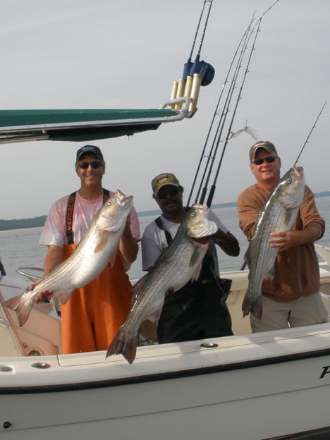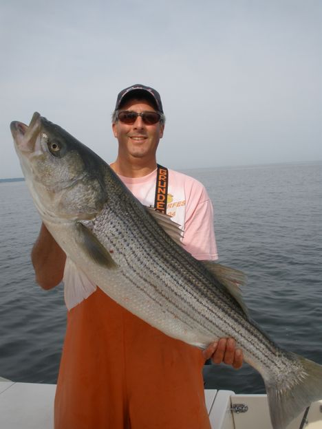 Our Annual 5 AM. Fathers Day trip was another for the record books. Regulars, Don and Skip, and newbee to Fathers Day AM , Rich were all treated to a slay-fest of Bass. All three banged the Bass and were limited out in 30 minutes! Don , Rich and Skip all had fish between 13-23 lbs. The final fish of the morning was a 42″, 30 lb. Bass caught by the Capt., which he graciously released with many others. The crew was home by 9;30 am to enjoy the days festivities with their families.