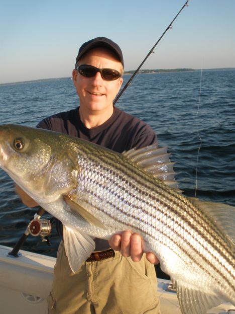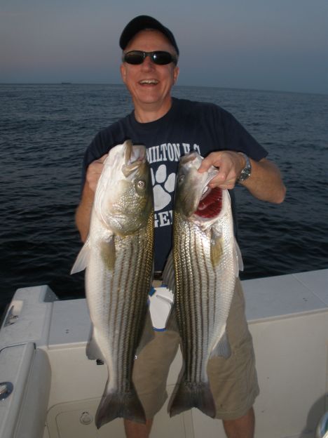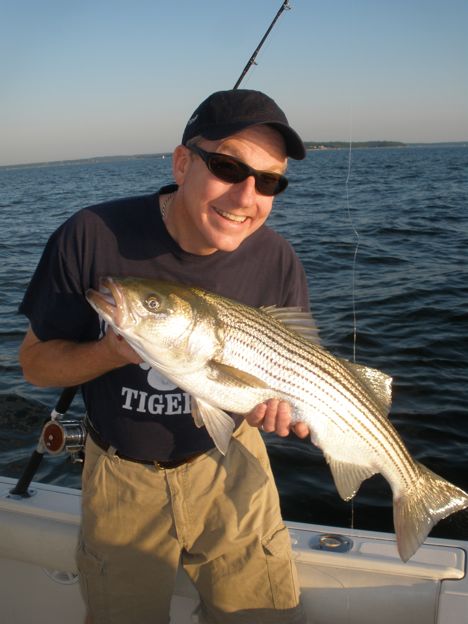 Long time friend, Bill Mandrona, was in for a weekend visit, and enjoy some time on the water. Little did Capt. Skip know, that he was going to be out fished 7 to 2 in the Striped Bass dept.,and Bill rubbed it in good! Bill had 4 fish before the Capt. had 1. All fish were in the 29″- 35″ range. There were even a few Bluefish in the mix. Even the next morning, Bill continued the humiliation by putting 3 nice Bass in the boat to none by Ron, Steve and Capt. Skip. Overall it was a great visit and alot of laughs! Thanks Willie