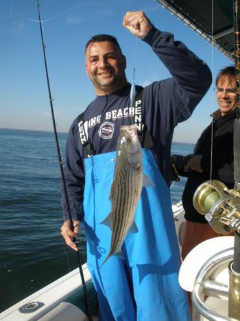 Good Friend, Hector, one of New York’s finest, came out to fish with Capt. Skip and put on a clinic, from start to finish! The Blackfish bite was sick, with some nice 4-7 lb. Slobs hitting the deck! At one point, Hector was lock and load, fish after fish. The rest of the gang gave up after the ” Hector Show” was to much to bear!. After limiting out, the gang went jigging for Blues and Bass, and once again, Hector had his day! Enough said…It was too crazy!!! In all , the Mailman, Rondini, Hector and Skip all caught some nice 4-7- lb. Tog. Rondini, was high hook with a nice 7 1/2 lb. Brute!